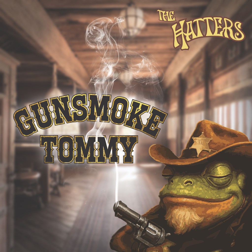 Gunsmoke Tommy came out Friday May 23rd, 2025 on all streaming platforms and you can buy or listen to it here on Bandcamp. It’s the first new song recorded by The Hatters in 30 years. Gunsmoke Tommy T-Shirts here.